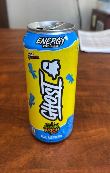 Ghost Sour Patch Kids Zero Sugar Blue Raspberry Energy Drink 16 fl oz Can